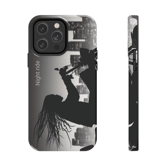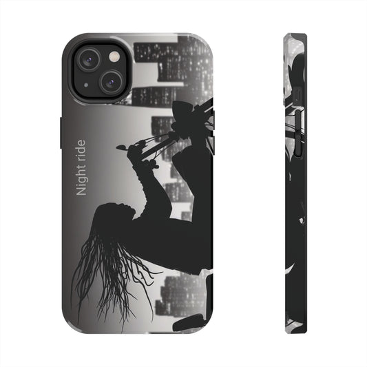 i14 Pro and Pro Plus Tough Phone Cases Night ride Tough Cases, Night ride Motorcycle City Scape Black Art Dreg Hair Rider Bagger Street Glide Road King
