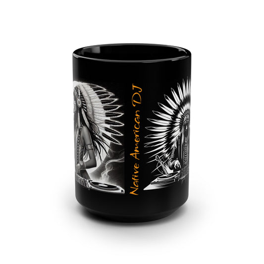 15oz Native American DJ Black Mug - Perfect for Coffee Lovers and Music Enthusiasts