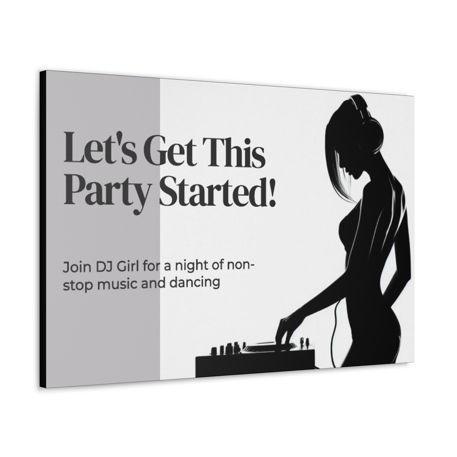 DJ Girl Each wrap is made with finely textured, artist-grade cotton substrate which helps reproduce your image in outstanding clarity and detail. These closed back canvases are built with a patented, solid support face and are excellent for indoor use.