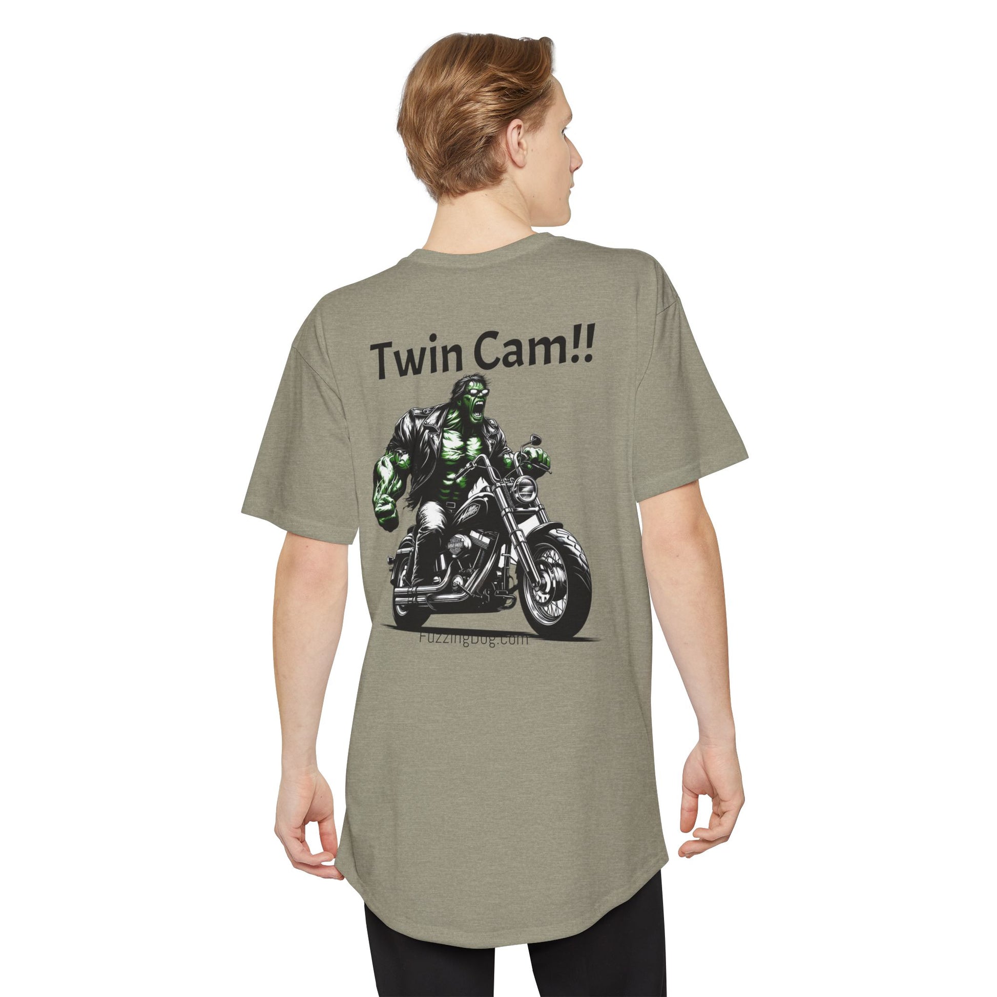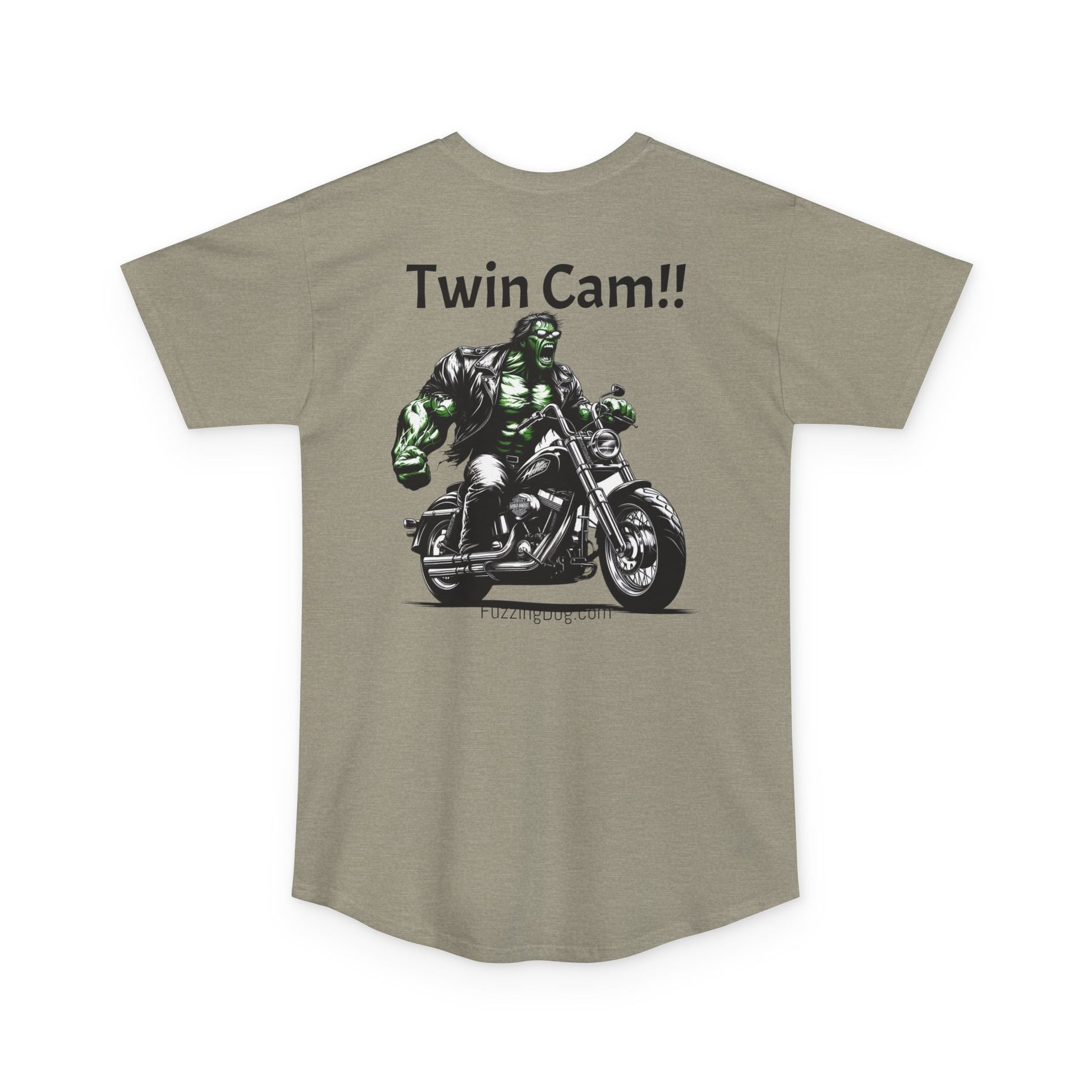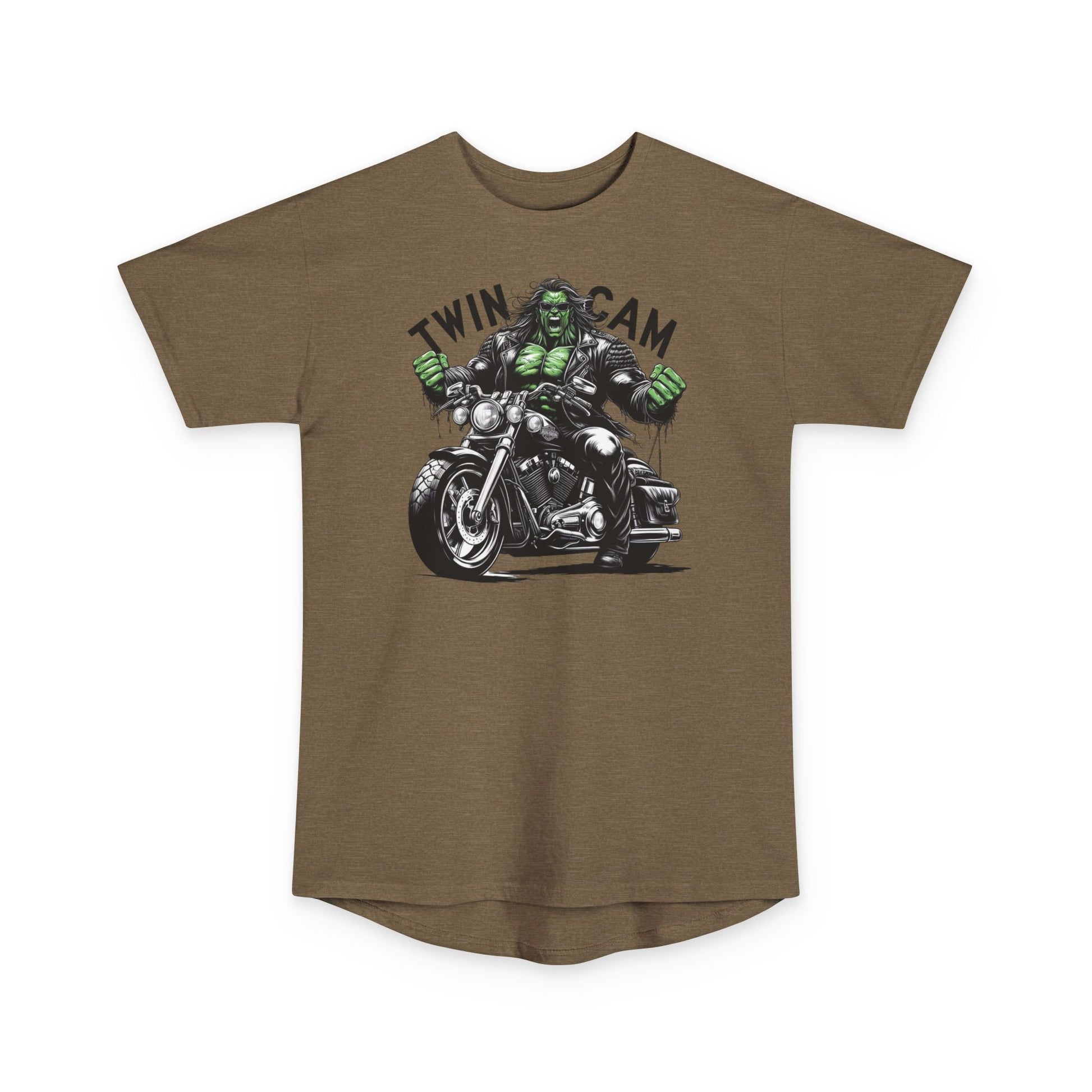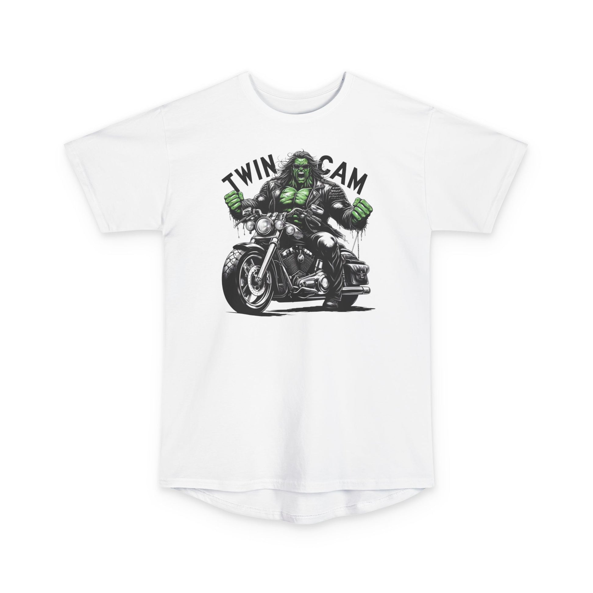 Twin Cam Urban Tee - Unisex Long Body Tee with Motorcycle Hulk Design